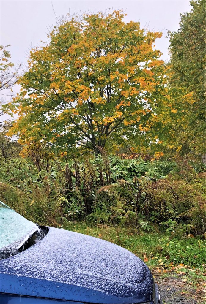 ほとんど麓まで雪が降りて来ていました。季節の変化が早く、しかも鮮やかですね。