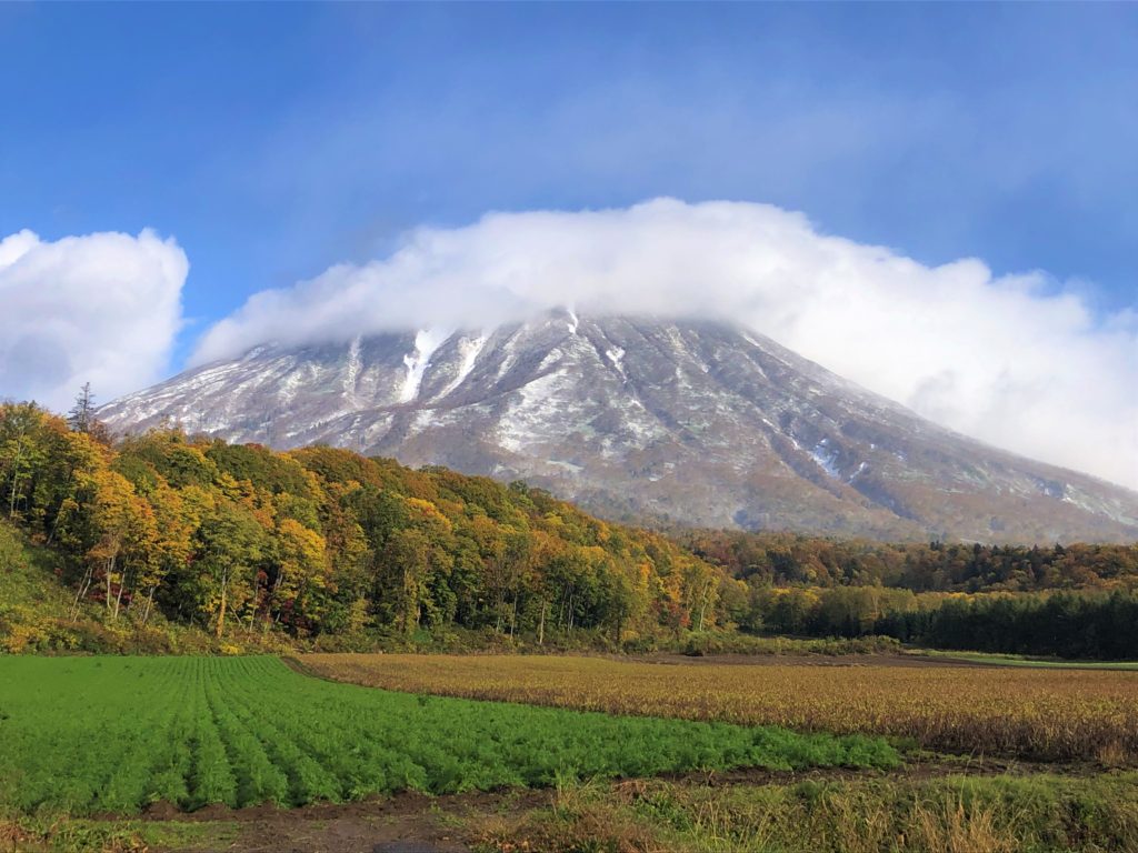 冬型の気圧配置が昨晩から続き、今朝9時くらいに一瞬雲の切れ間から羊蹄山が姿を現しました。