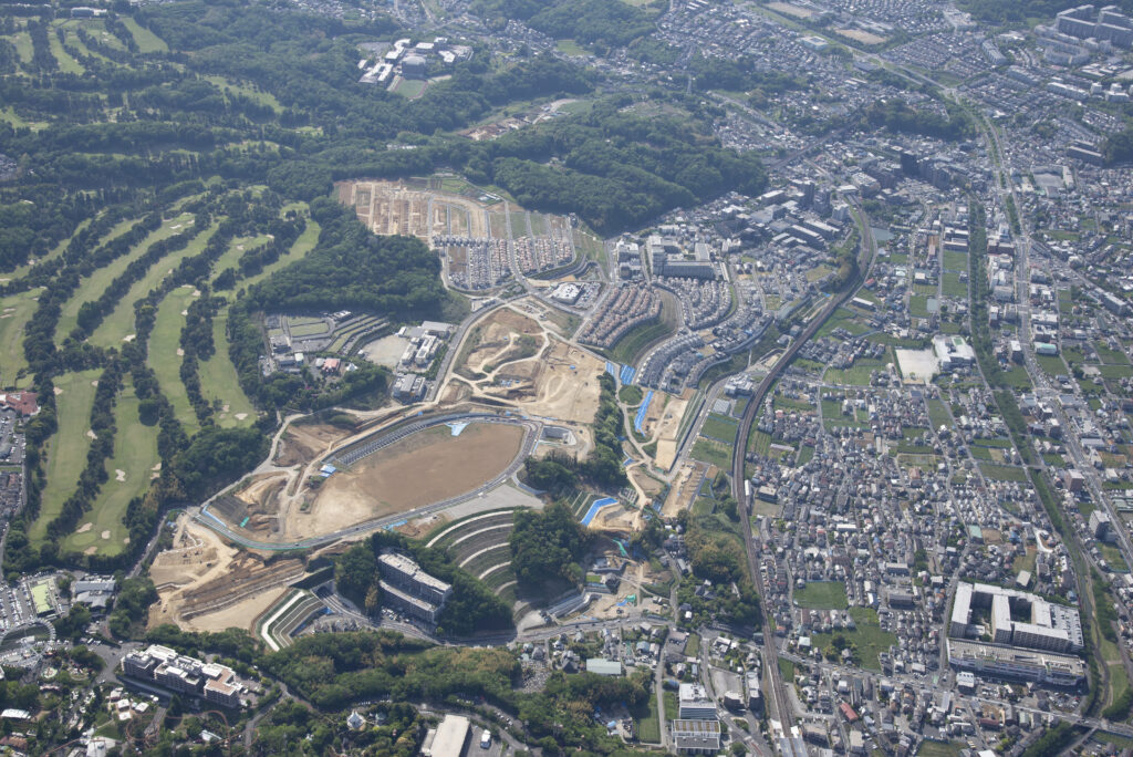 添付の写真は、東京郊外の稲城市における約90haの市街地開発です。